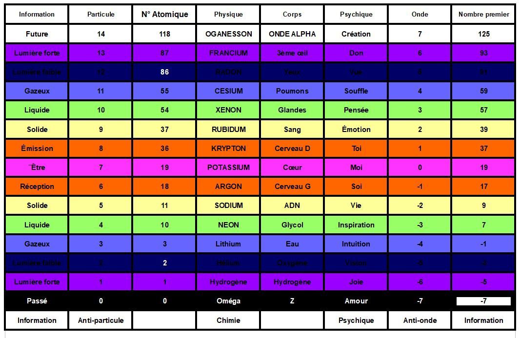 L’âme interagit avec les basses fréquences de l'énergie conscience et le corps avec les hautes. Par exemple ici, le bleu est une couleur avec une fréquence de lumière plus élevée que le rouge, la longueur d'onde étant proportionnellement inverse.